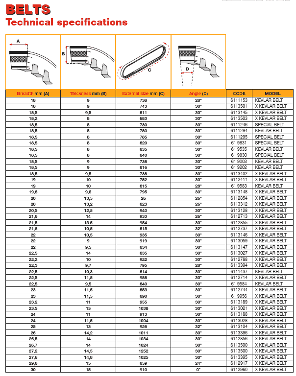 Кто знает, как на ремнях malossi по коду определить размер ремня и наоборот по размеру определить код необходимого ремня?