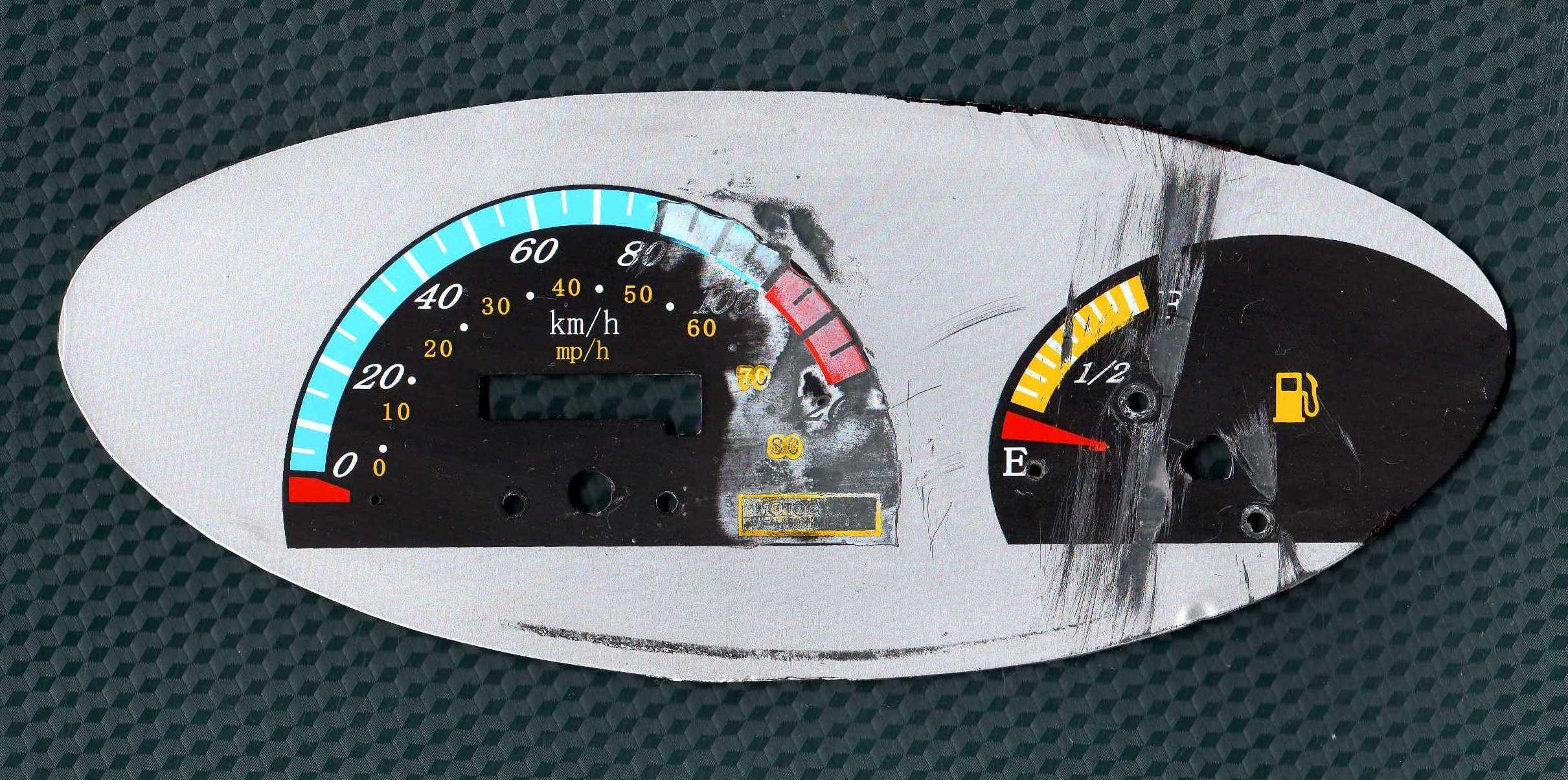 Выручите кто-нибудь пожалуйста. - а это мой мопед (фото с магазина какого-то)...Поможете? Сильно крутой не нужно, просто учесть бы, что мопед черно-желтого цвета, и спидометр такой бы... Прикрепил отсканированные остатки спидометра |