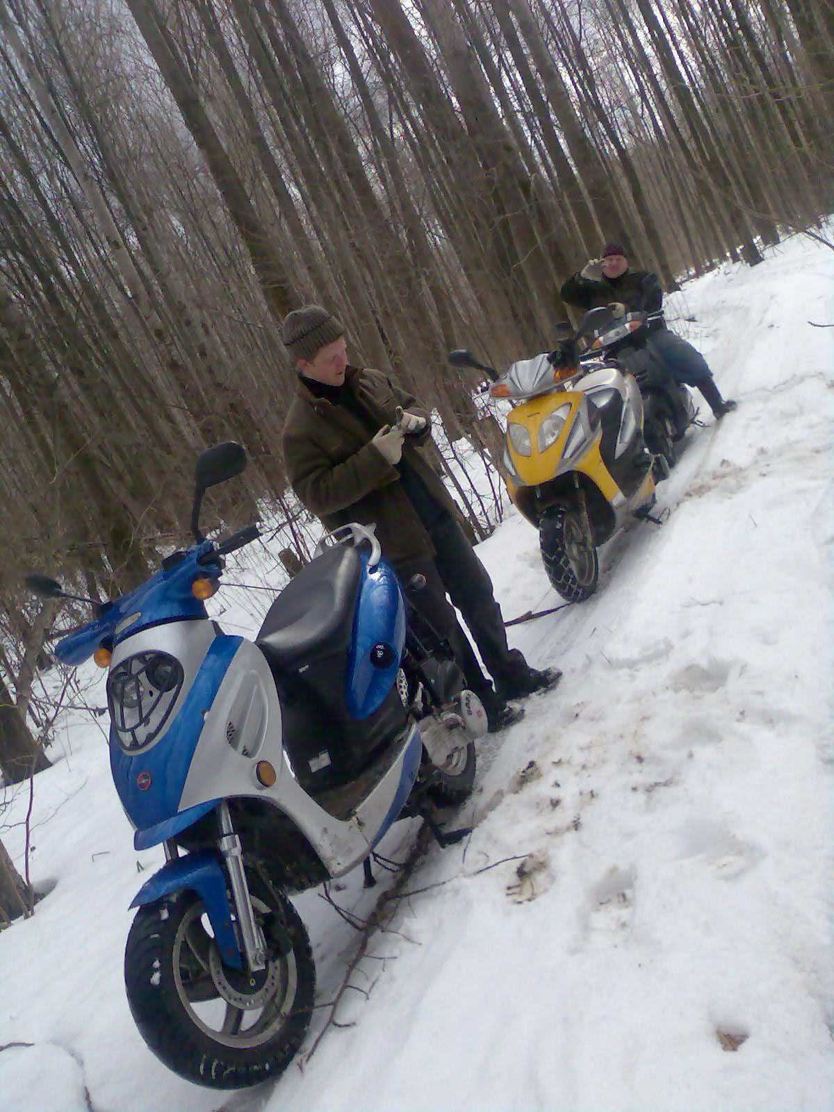 А дело было так мы как то с другом поехали на речку ну у нас тут не далеко километров 6 где то по не асфальтированной дороге, ну я за рулем еду смотрю дорога ровная ну я дал гагу ну мы и разогнались где то 50 км едем с километр проехали и заднее колесо в колею небольшую упало ну я рулем дернул и передним попал в колею и на этих 50 нас просто снесло на бок катились чето долго метров 6 в итоге разбил серкало заднего вида ободрал руку и другу ногу киком к земле придавило, дак меня как то сглючило когда удар был мы все остановились я лежу на земле друг орет нога нога ну я думаю все наверно перелом и думаю весь пласник на скуторе сломан ну вроде удачно отделались! Удачи всем на дорогах!!!! Вот кто скажет почему нас как скутеристов не уважают на дороге не считают за транспорт? я именно по этой причине сделал тюнинг движка что бы показать что эта табуретка еще не на то способна)))))) |